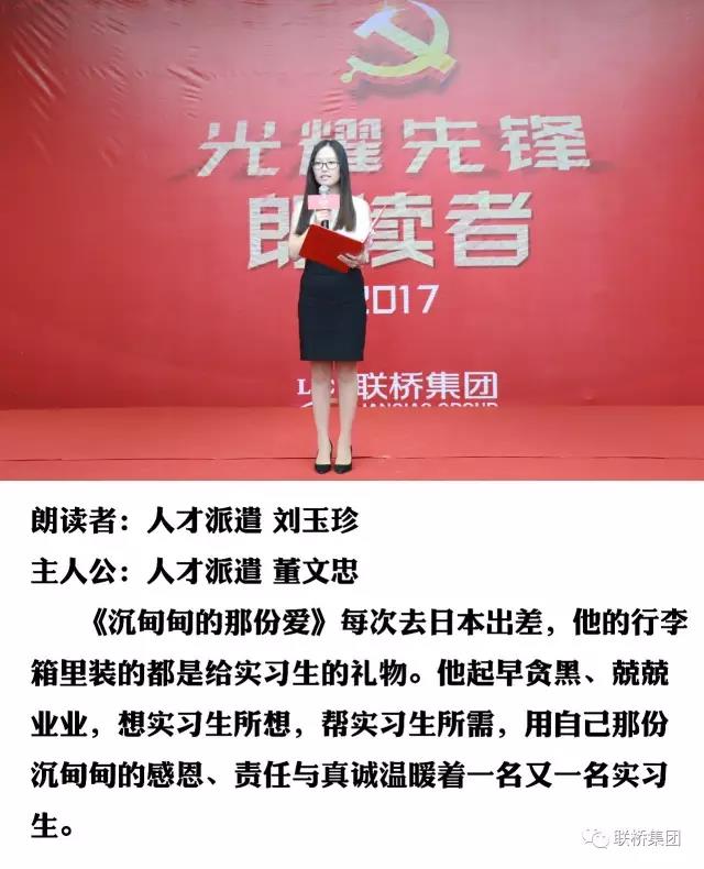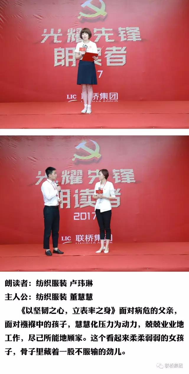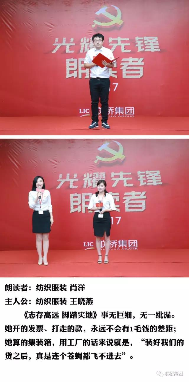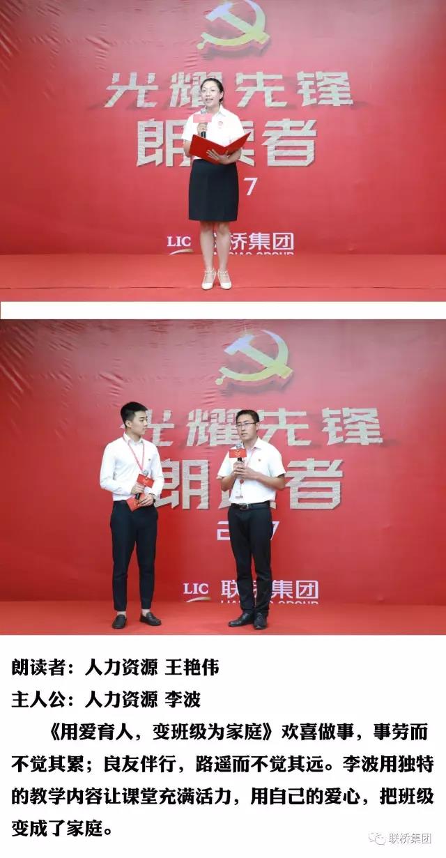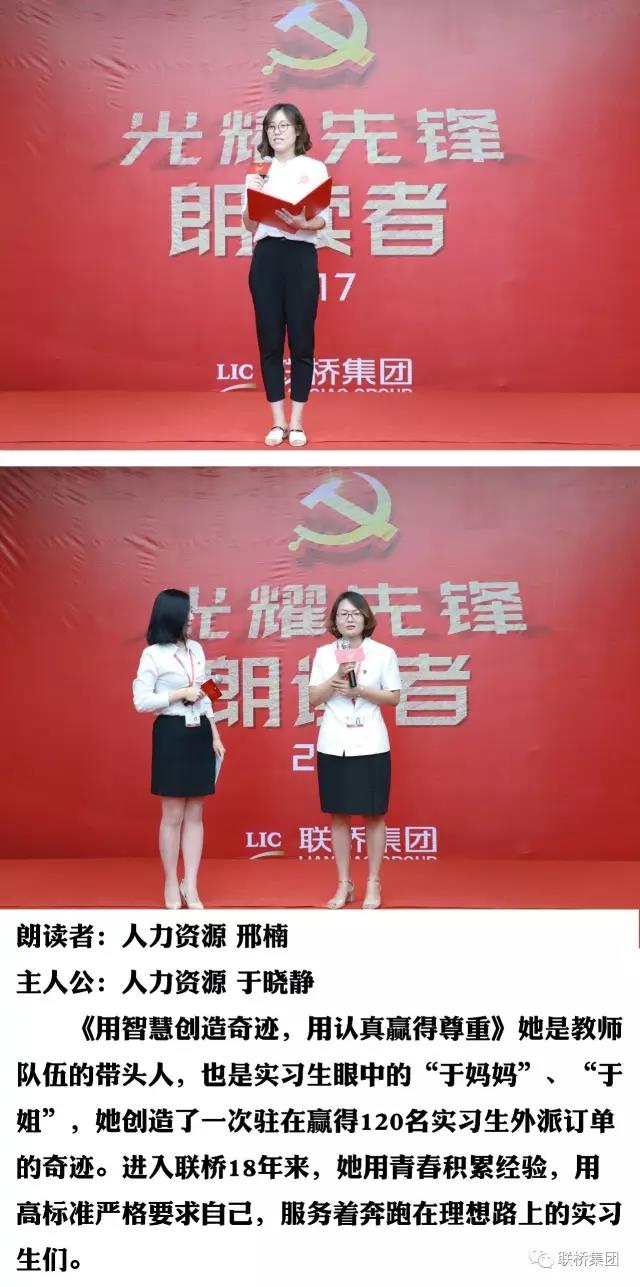 2017年7月26日下午,聯(lián)橋集團黨委舉辦了“光耀先鋒朗讀者”活動,150名黨員齊聚一堂,用《朗讀者》的節(jié)目形式,講述聯(lián)橋光耀先鋒優(yōu)秀黨員的感人故事。集團黨委書記、董事長慕镕鍵,集團董事、塑料新材黨支部書記慕衛(wèi)波,集團黨委副書記宋威麗等領(lǐng)導出席了活動。