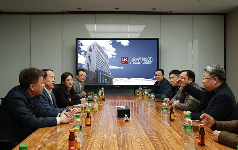 2018年1月18日,韓都衣舍電商集團(tuán)董事長(zhǎng)趙迎光一行9人來(lái)聯(lián)橋集團(tuán)考察,威海市商務(wù)局局長(zhǎng)喬軍、副局長(zhǎng)劉繼萍等領(lǐng)導(dǎo)陪同。