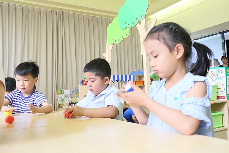 隨后,兩名老師帶領(lǐng)孩子們進(jìn)行了體驗(yàn)課。在老師的示范引領(lǐng)下,孩子們手中的橡皮泥,變成了一個(gè)個(gè)可愛的卡通形象。室內(nèi)孩子們玩得不亦樂乎,室外是家長們溢滿幸福的笑臉。