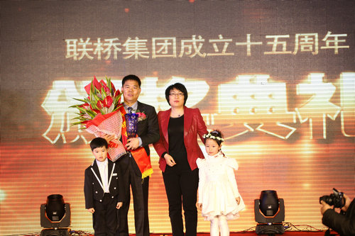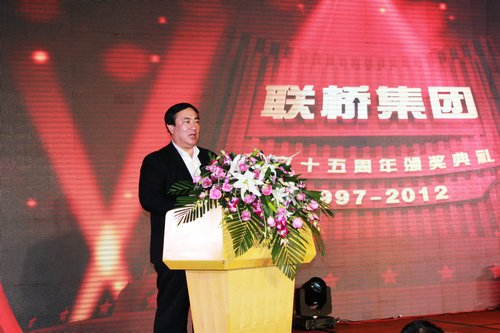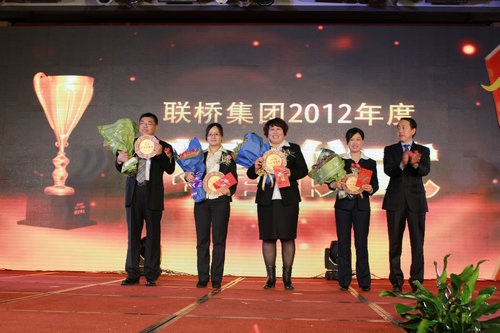 首先舉行的是聯(lián)橋集團(tuán)成立十五周年頒獎(jiǎng)典禮,通過(guò)LED大屏幕,播放獲獎(jiǎng)人員VCR及頒獎(jiǎng)詞,頒獎(jiǎng)?lì)I(lǐng)導(dǎo)簇?fù)砜蓯?ài)的小花童上臺(tái),把精美的獎(jiǎng)杯、鮮花和紅包,授予為聯(lián)橋集團(tuán)建設(shè)和發(fā)展做出卓越貢獻(xiàn)的2名聯(lián)橋棟梁、8名建業(yè)功勛和9名敬業(yè)典范。在2012年度表彰儀式上,對(duì)14個(gè)先進(jìn)部門和企業(yè)、58名先進(jìn)個(gè)人進(jìn)行了表彰。