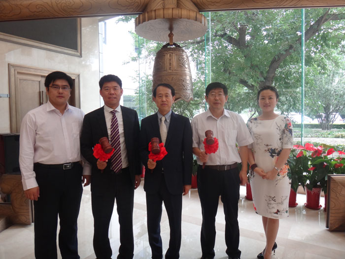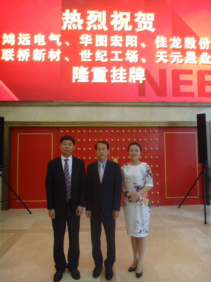 8月22日,在北京舉行的“新三板”掛牌儀式上,伴隨著喜慶熱烈的掌聲,聯(lián)橋集團董事長慕镕鍵,聯(lián)橋集團董事、聯(lián)橋新材總經(jīng)理慕衛(wèi)波,威海高技術(shù)產(chǎn)業(yè)開發(fā)區(qū)經(jīng)濟發(fā)展局局長田曾福共同敲響開市寶鐘,標(biāo)志著集團公司進入多層次資本市場實現(xiàn)新的突破。出席掛牌儀式的還有威海高區(qū)金融辦主任周芊,上海證券公司經(jīng)理馬奕彤,聯(lián)橋新材副總經(jīng)理李曉妹等。